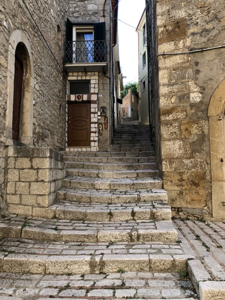 Una delle opere architettoniche più conosciute di questo paesino molisano è sicuramente la scalinata a tre corsie. Costituita due scalinate laterali che costeggiano quella grande centrale, è una di quelle cose che, a vederla dal basso con i suoi 365 gradini, potrebbe scoraggiare i più pigri. Essa collega il centro storico alla piazza, sita più in basso rispetto al borgo, e prende il nome dalla chiesa di San Nicola che si raggiunge appunto alla fine della scalinata. Costruita in pietra calcarea bianca, è forse una delle più belle gradinate di tutto il Molise.